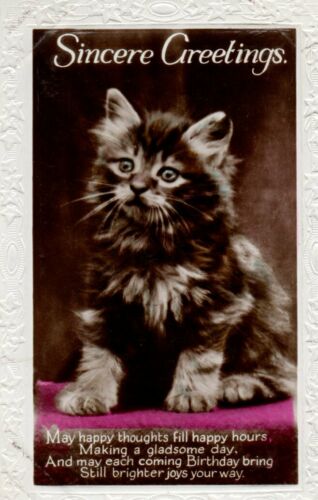 VINTAGE BIRTHDAY GREETINGS postcard: PRETTY TABBY KITTEN CAT