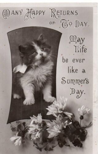 VINTAGE BIRTHDAY GREETING postcard: PRETTY KITTEN CAT