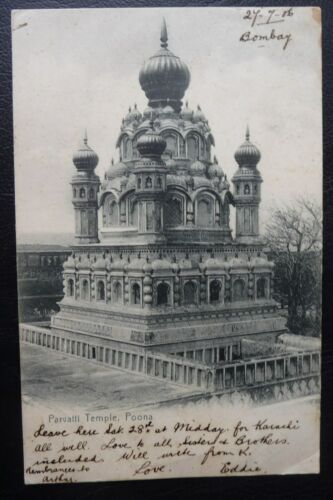 Title (ebay affiliate link): PARVATTI TEMPLE POONA INDIA POSTCARD POSTED MANDVI BOMBAY 1906
