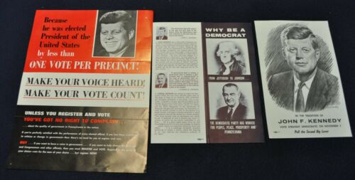 Title (ebay affiliate link): 3 Vintage 1964-66 President John Kennedy Handout Flyers - Encouraging Voters