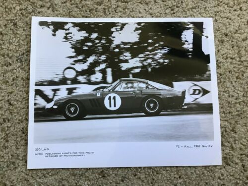Title (ebay affiliate link): Fall 1967 Ferrari race car, 8 by 10 inch black an white photo.