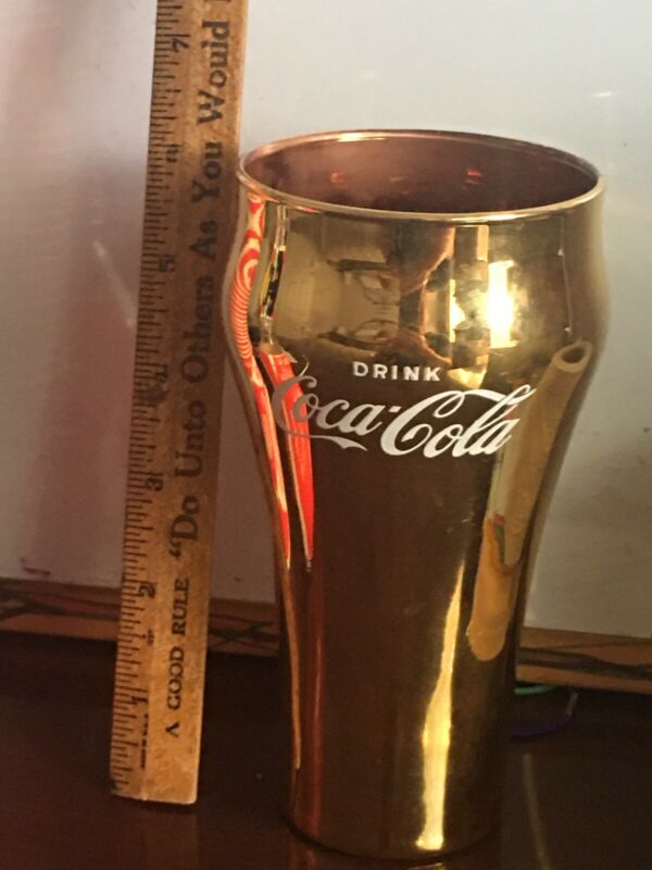 Vintage Coca-Cola Large Gold Drinking Glass Very Good No Peeling If The Glass