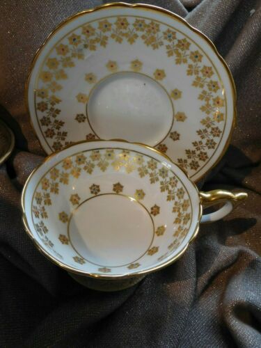 ROYAL STAFFORD footed TEA CUP AND SAUCER RAISED color BEADED GOLD GILT