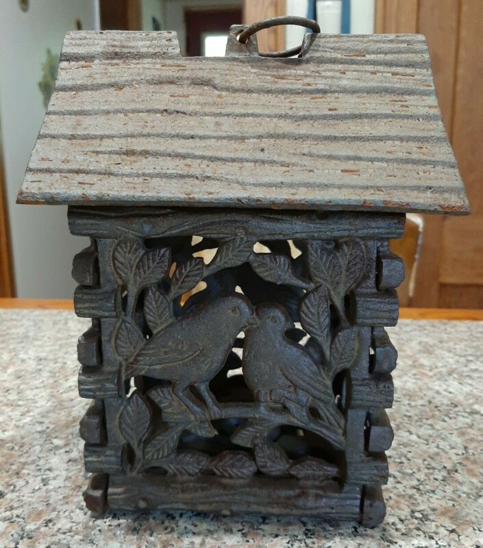 Title (ebay affiliate link): Rustic Antique Cast Iron Bird House Candle Holder Lantern Home Garden Decor