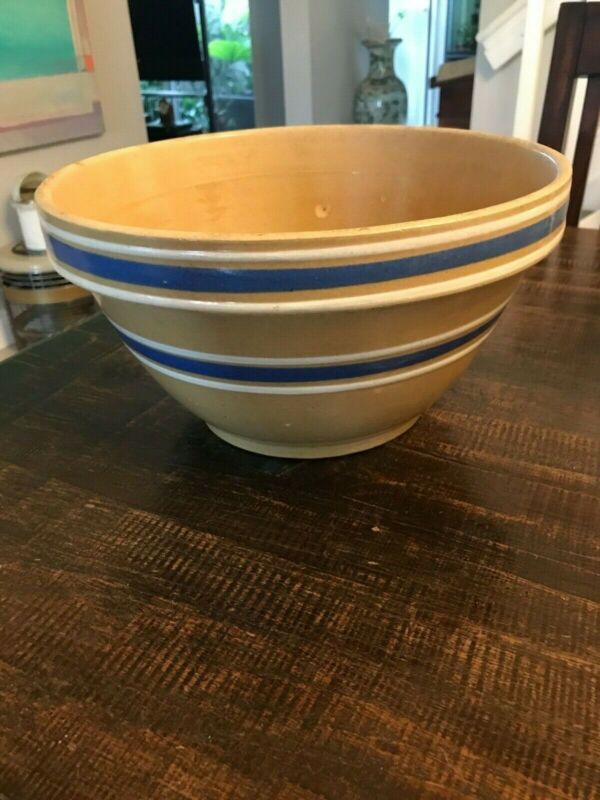 Title (ebay affiliate link): Antique Yelloware 11" Blue/White Stripe Bowl 11 Inch Diameter-Great Starter Bowl