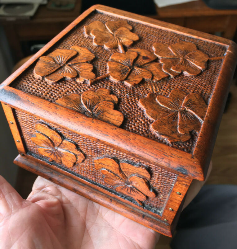 Title (ebay affiliate link): Vintage Hand Carved LIDDED WOOD BOX w/ FLOWERS / Lovely Condition /4.5 inch BILL