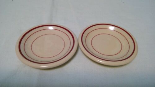 VINTAGE TWO TAN IRONSTONE RED STRIPES BUTTER PATS 3 " UNMARKED VERY GOOD