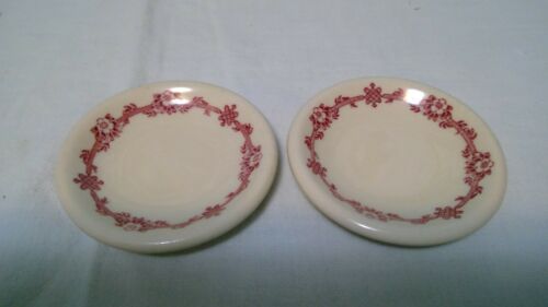 VINTAGE TWO IRONSTONE WITH RED FLORAL DESIGN BUTTER PATS 3 " UNMARKED VERY GOOD