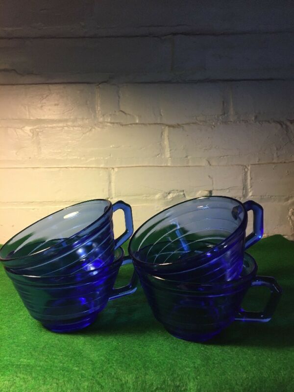 Title (ebay affiliate link): VINTAGE HAZEL ATLAS COBALT BLUE DEPRESSION GLASS MODERNTONE CUPS SET OF FOUR