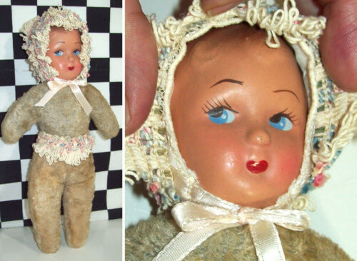 9" Antique Celluloid & Mohair Rattle Doll for infants - Original Cloth~1920''s~~~