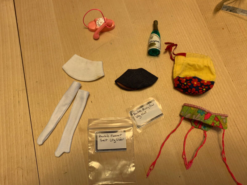 Mattel Vintage Barbie Hat & Visor, Tote Bag, Phone, Wine Bottle, Gloves, Notes