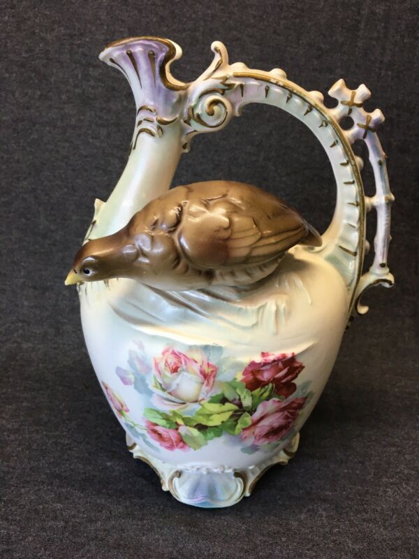 ANTIQUE VIENNA AUSTRIA HAND PAINTED EWER DECANTER PITCHER BIRD FIGURE Porcelain