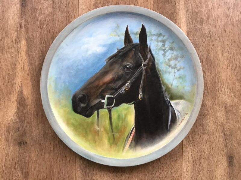 Title (ebay affiliate link): Vintage Decorative Wooden Plaque with Hand Painted Horse Signed P.Barlow 95#915