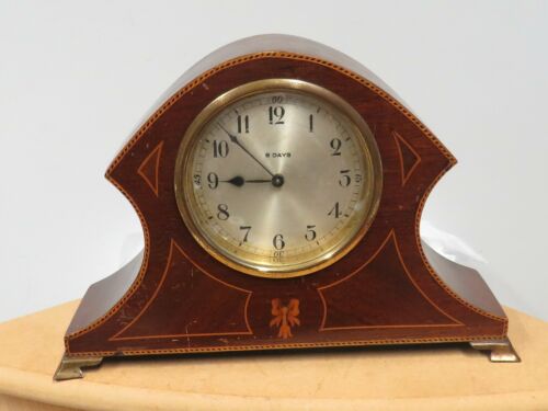 Title (ebay affiliate link): vintage edwardian era 8 day mantel clock mahogany inlaid case