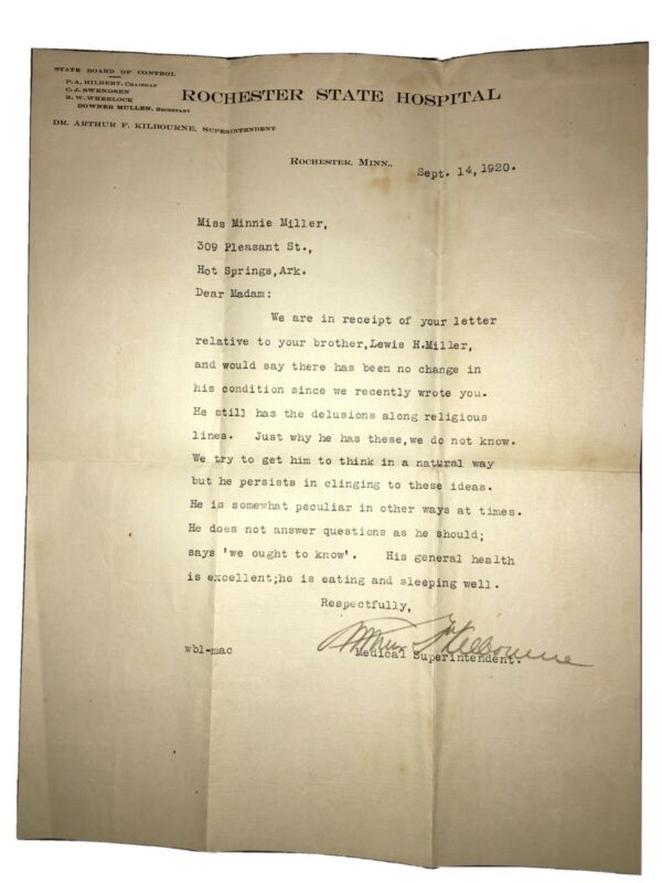 Title (ebay affiliate link): 1920 Rochester State Hospital Minnesota Insane Asylum letter