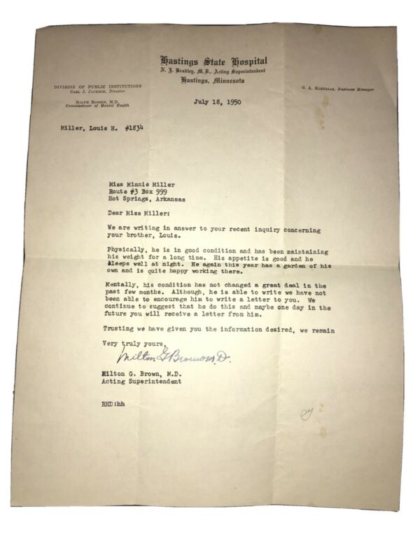 1950 Hastings State Hospital Minnesota Insane Asylum letter