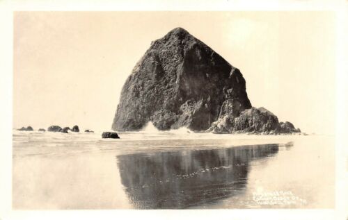 Title (ebay affiliate link): RPPC Haystack Rock, Cannon Beach, ORE., Vintage Woodfield Photo Postcard