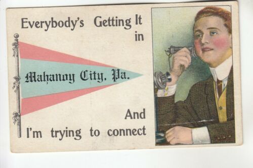 Title (ebay affiliate link): Blue & Pink Printed Pennant Making a Phone Call to Mahanoy City PA