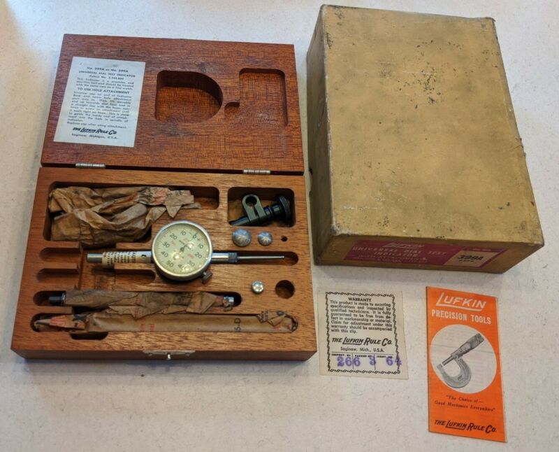 Title (ebay affiliate link): Vtg 1964 LUFKIN Set #399A Universal Dial Test Indicator w/ Attachments & Box NR