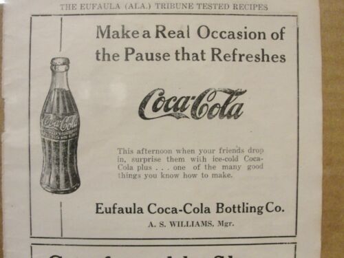 Title (ebay affiliate link): RARE EUFAULA ALABAMA COCA-COLA BOTTLING CO. ADVERTISEMENT 1910-1920''s AUTHENTIC