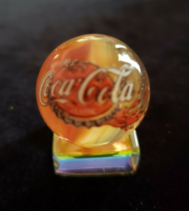 Title (ebay affiliate link): UNUSUAL COCA COLA LOGO 1" SHOOTER MARBLE Clear w/Orange/White Tiger Eye Swirls