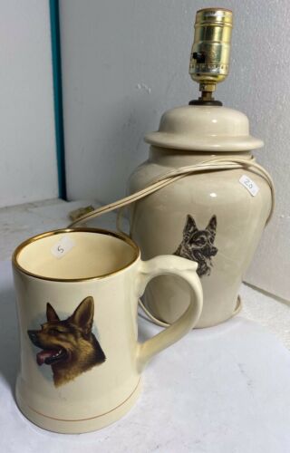 Title (ebay affiliate link): Wade England German Shepherd Dog Mug Cup Gold Rim & JG German Shepherd Lamp