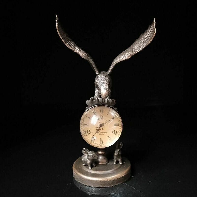 Title (ebay affiliate link): Chinese Exquisite Brass Handmade Carving Hawk Mechanical Clock Art