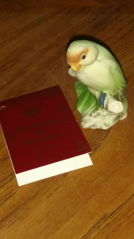Capodimonte Small green parrot parakeet budgie type bird stamped animal figurine