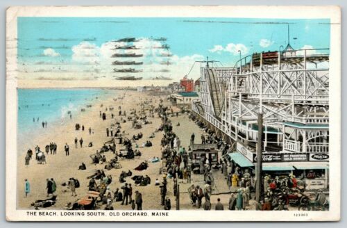 Title (ebay affiliate link): Old Orchard Maine~Roller Coaster on Beach~MOXIE~Coca-Cola Stand~Frankforts~1932