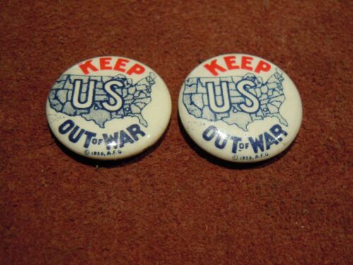 Title (ebay affiliate link): 1939 American Isolationist KEEP US OUT OF WAR WWII Neutrality Pinback 1939