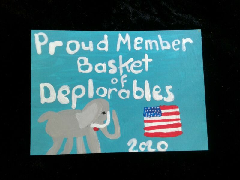 Title (ebay affiliate link): BASKET OF DEPLORABLE painting TRUMP 2020 art TRADING CARD ACEO elephant USA Flag