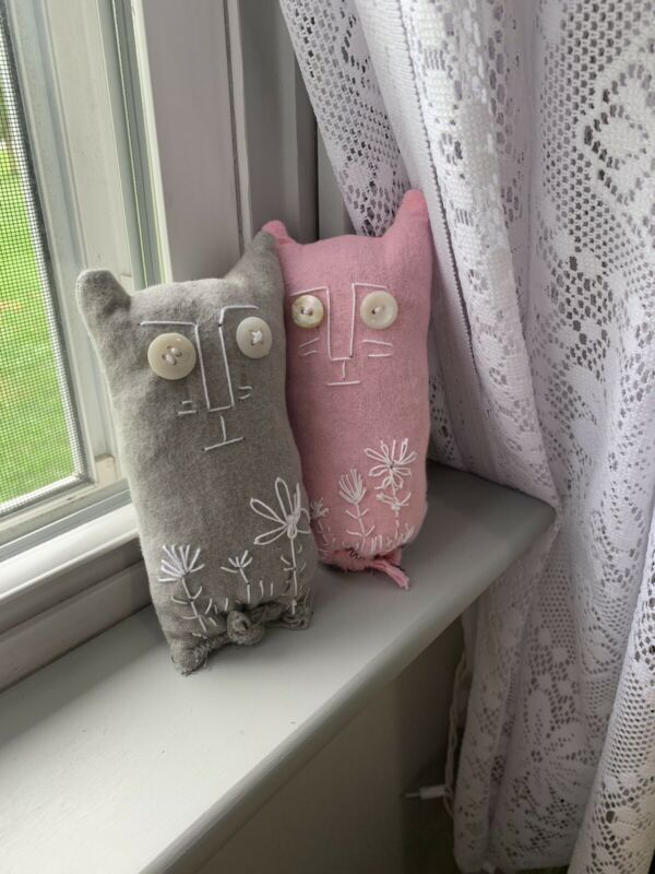 Primitive Grey & Pink Kitty Cats Shelf Sitters Set Handmade