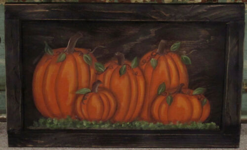 *~*PRIMITIVE*~* HP FOLK ART PRIM PUMPKINS *~* FALL *~* DOOR PANEL