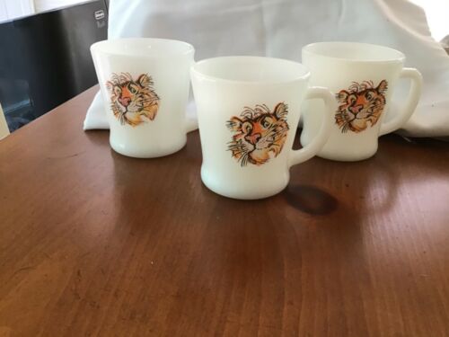 3 VINTAGE ESSO EXXON TIGER COFFEE MUGS MILK GLASS FIRE-KING