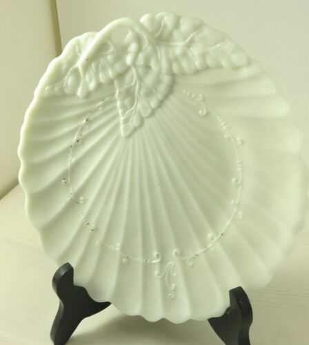 ANTIQUE SHELL AND GRAPES PATTERN MILK GLASS PLATE