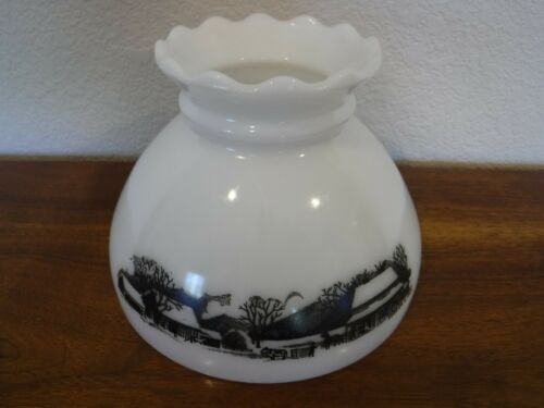 Vintage or Mid Century Currier And Ives Milk Glass Shade Winter Scene Shade Only