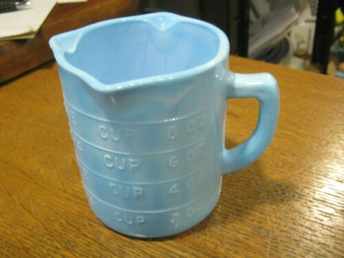 BLUE MILK GLASS 1 CUP Measure Cup, 2, 4, 6, 8 oz, 1/4 & 1/3 Cup Increments mm