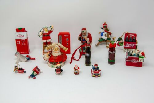Title (ebay affiliate link): 16 Coca-Cola Ornaments Mixed Lot Miniature Minis + Original Size Soda Christmas