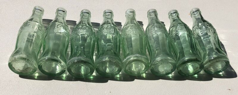 Eight (8) Salisbury, MD Green Glass Hobbleskirt COKE Coca-Cola Bottles 6 1/2 oz