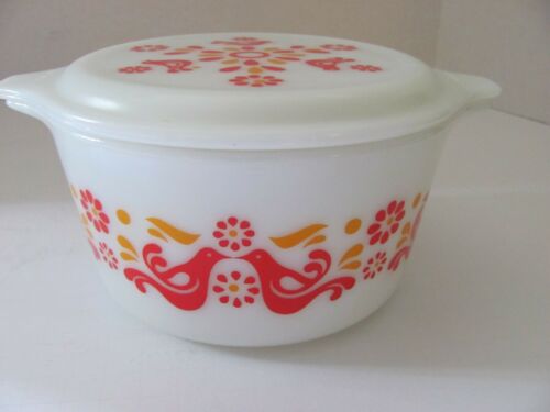 Pyrex Friendship Birds 473 One Qt. Casserole Dish milk glass w/matching lid