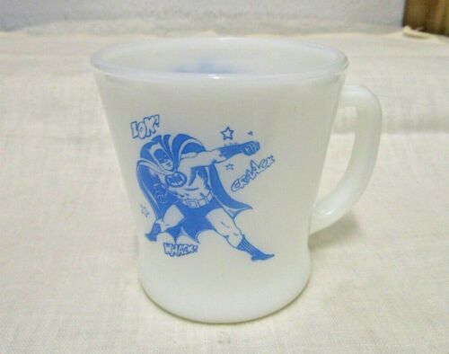 VINTAGE ANCHOR HOCKING FIRE-KING MILK GLASS BATMAN CUP MUG BLUE