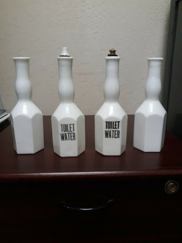 Vintage White Milk Glass Barber Bottles Set