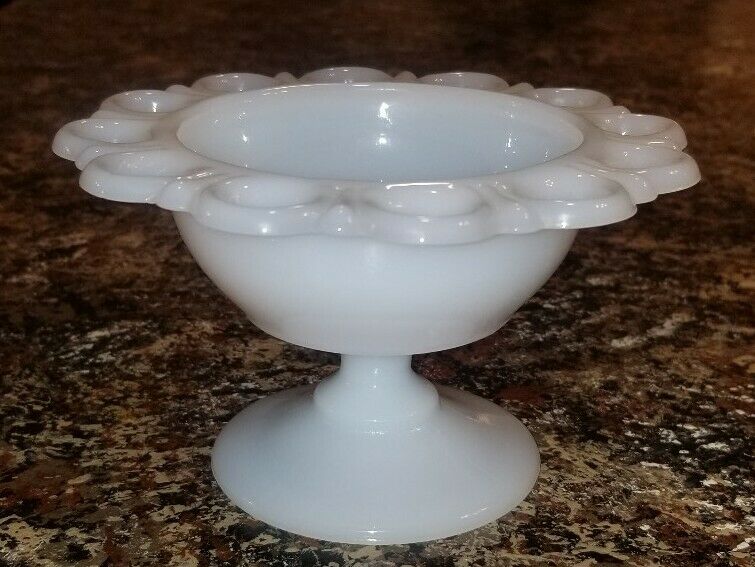 Vintage Anchor Hocking Open Lace Old Colony Milk Glass Medium Pedestal Compote