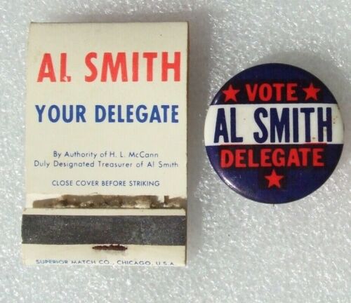 Title (ebay affiliate link): AL SMITH POLITICAL PIN PINBACK BUTTON & MATCHBOOK