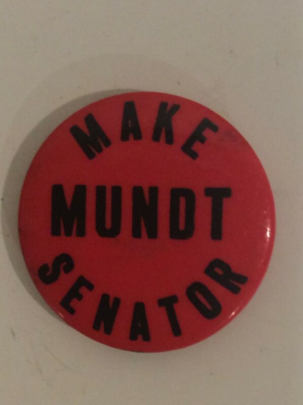 Title (ebay affiliate link): Karl Mundt Make Mundt Senator POLITICAL Pin BUTTON Pinback 1 1/4 Inch