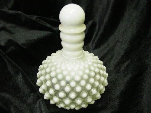 Title (ebay affiliate link): Fenton Milk Glass Hobnail Opalescent Clear White Perfume Bottle Cork Stopper