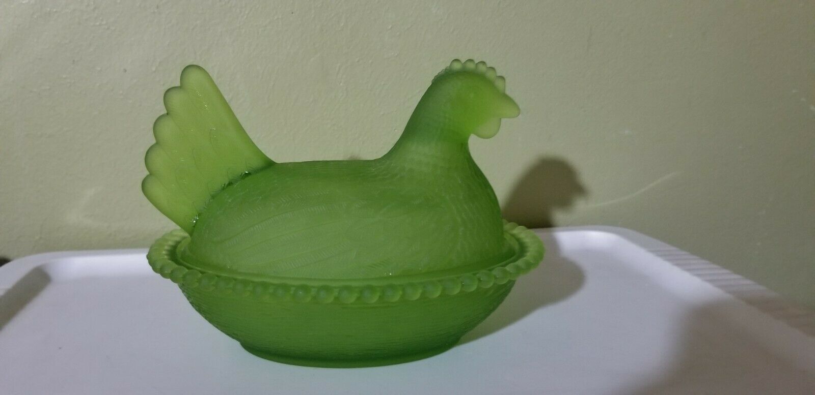 Title (ebay affiliate link): Vintage Green Glass Hen on a Nest Covered Dish Chicken Candy Dish