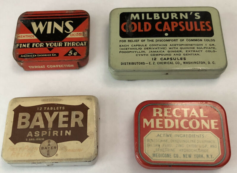 Lot Of Vintage Bayer Aspirin & Medicine Tins