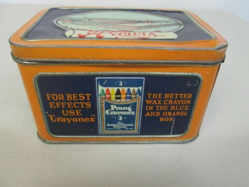 ANTIQUE VINTAGE HYGIEIA PRANG CRAYONEX OLD FAITHFUL CRAYONS ADVERTISING TIN