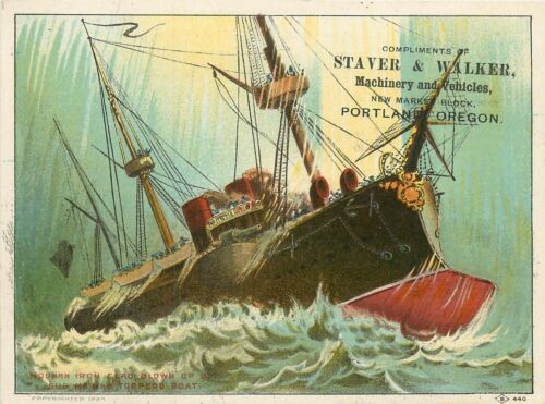 Title (ebay affiliate link): Staver & Walker. Machinery And Vehicles. Portland, OR Trade Card. Iron Clad Ship
